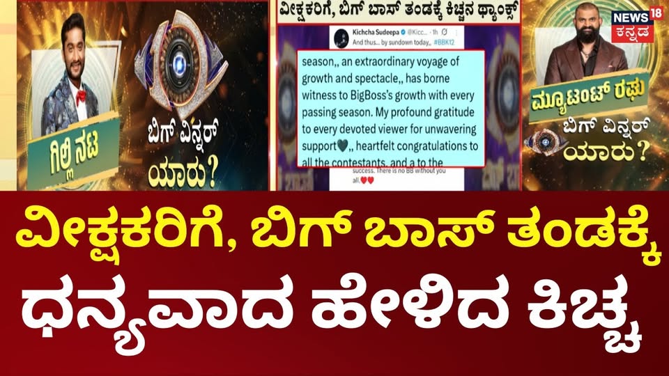 ಬಿಗ್ ಬಾಸ್ ಕನ್ನಡ ಸೀಸನ್ 12 ಯಶಸ್ವಿಯಾಗಿ ಮುಕ್ತಾಯಗೊಂಡಿದೆ. 12ನೇ ಸೀಸನ್ಗೂ ಮುನ್ನ ಬಂದಿದ್ದ ಶೋಗಳಿಗಿಂತ ಒಂದು ಹೆಜ್ಜೆ ಮುಂದಕ್ಕೆ ಹೋಗಿದೆ. ಈ ಸೀಸನ್ನಿಂದ ಕಲರ್ಸ್ ಕನ್ನಡ ನಂ ಸ್ಥಾನಕ್ಕೂ ಏರಿತು. ಎಲ್ಲಕ್ಕಿಂತ ಹೆಚ್ಚಾಗಿ ಇದೂವರೆಗೂ ಬಿಗ್ ಬಾಸ್ ಶೋಗೆ ಬಂದಿದ್ದ ಸ್ಪರ್ಧಿಗಳಲ್ಲೇ ಅತೀ ಹೆಚ್ಚು ಜನಪ್ರಿಯತೆ ಪಡೆದವರಲ್ಲಿ ಗಿಲ್ಲಿ ನಟ ಹೊರ ಹೊಮ್ಮಿದ್ದಾರೆ. ಗಿಲ್ಲಿ ನಟ