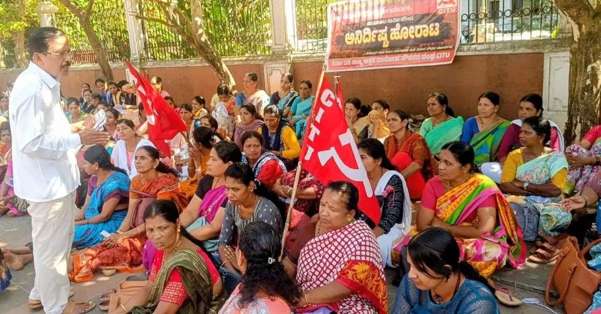 ಬಳ್ಳಾರಿ| ಮೂರು ತಿಂಗಳ ಬಾಕಿ ವೇತನ ನೀಡುವಂತೆ ಆಗ್ರಹಿಸಿ ಸರಕಾರಿ ಹೊರಗುತ್ತಿಗೆ ನೌಕರರ ಸಂಘದಿಂದ ಧರಣಿ