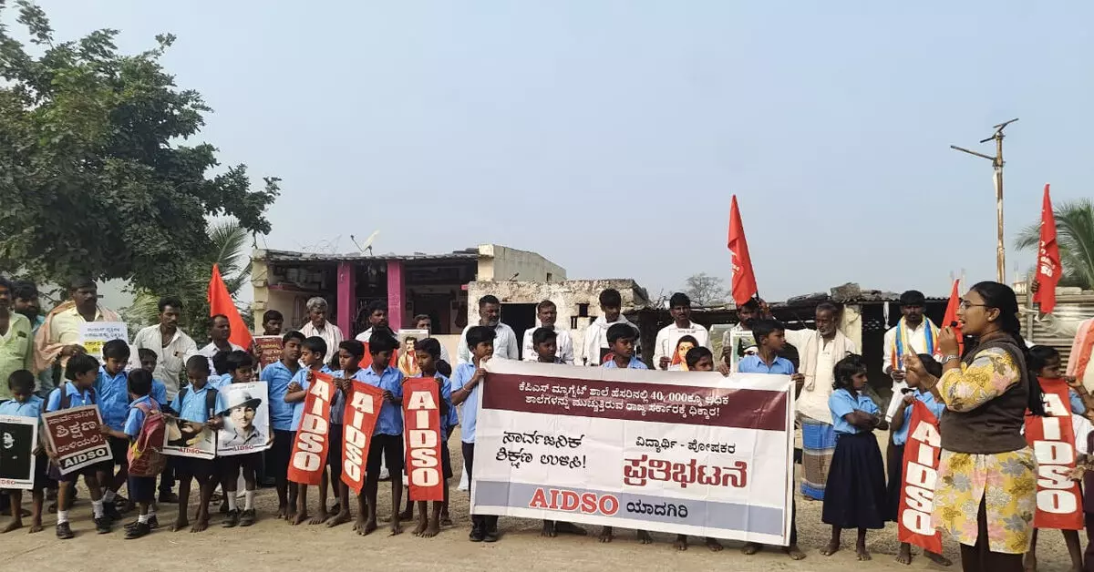 ಯಾದಗಿರಿ | ಕೆಪಿಎಸ್ ಮ್ಯಾಗ್ನೆಟ್ ಯೋಜನೆಗೆ ವಿರೋಧ : ನಾಲ್ವಡಗಿಯಲ್ಲಿ AIDSO ನೇತೃತ್ವದಲ್ಲಿ ಪ್ರತಿಭಟನೆ