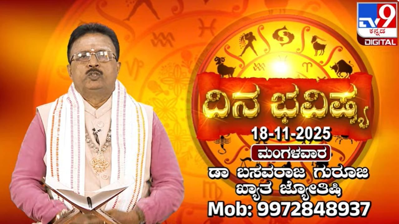 ಖ್ಯಾತ ಜ್ಯೋತಿಷಿ ಡಾ. ಬಸವರಾಜ ಗುರೂಜಿ ಅವರು 18-11-2025ರ ಮಂಗಳವಾರದ ದೈನಂದಿನ ರಾಶಿ ಭವಿಷ್ಯವನ್ನು ನೀಡಿದ್ದಾರೆ. ಸ್ವಾತಿ ನಕ್ಷತ್ರ, ಗಜಕೇಸರಿ ಯೋಗ, ಮತ್ತು ಗ್ರಹಗಳ ಸ್ಥಾನಗಳ ಆಧಾರದ ಮೇಲೆ ಮೇಷದಿಂದ ಮೀನದವರೆಗಿನ ಎಲ್ಲಾ 12 ರಾಶಿಗಳಿಗೂ