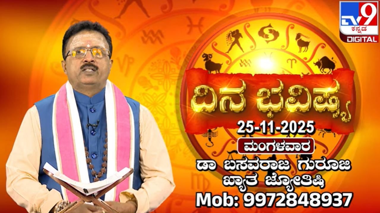 ಇಂದು 25-11-2025, ಮಂಗಳವಾರದಂದು ಡಾ. ಬಸವರಾಜ ಗುರೂಜಿ ಅವರು ದ್ವಾದಶ ರಾಶಿಗಳ ಫಲಾಫಲಗಳನ್ನು ವಿವರಿಸಿದ್ದಾರೆ. ಸುಬ್ರಮಣ್ಯ ಪಂಚಮಿಯ ವಿಶೇಷ ದಿನದಂದು, ಮೇಷ, ವೃಷಭ, ಮಿಥುನ, ಕರ್ಕಾಟಕ, ಸಿಂಹ, ಕನ್ಯಾ ರಾಶಿಗಳಿಗೆ ಆರ್ಥಿಕ ಸ್ಥಿತಿ, ಉದ್ಯೋಗ,