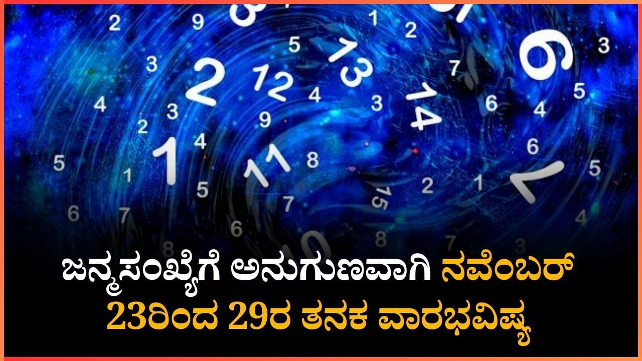 ನವೆಂಬರ್ 23ರಿಂದ 29ರವರೆಗಿನ ನಿಮ್ಮ ವಾರಭವಿಷ್ಯವನ್ನು ಸಂಖ್ಯಾಶಾಸ್ತ್ರದ ಆಧಾರದಲ್ಲಿ ತಿಳಿಯಿರಿ. ನಿಮ್ಮ ಜನ್ಮಸಂಖ್ಯೆಗೆ ಅನುಗುಣವಾಗಿ ಈ ವಾರ ಪ್ರೇಮ, ವೃತ್ತಿ, ಹಣಕಾಸು ಮತ್ತು ಆರೋಗ್ಯ ಹೇಗಿರಲಿದೆ ಎಂಬುದರ ಸಮಗ್ರ ಮಾಹಿತಿ ಇಲ್ಲ