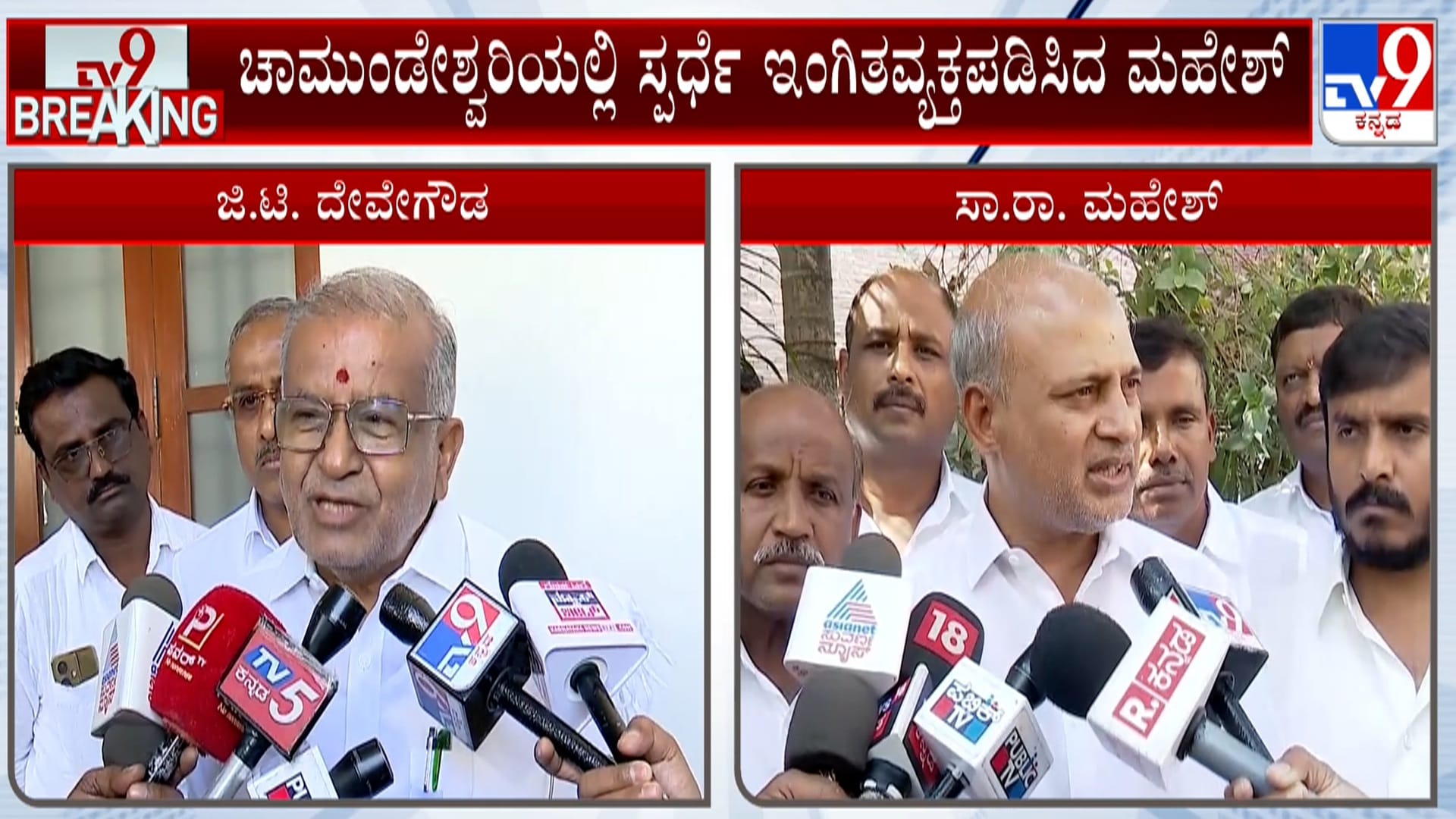 ಸಾ.ರಾ. ಮಹೇಶ್ ಅವರು ಜಿ.ಟಿ.ದೇವೇಗೌಡರ ವಿರುದ್ಧ ಚಾಮುಂಡೇಶ್ವರಿಯಲ್ಲಿ ಸ್ಪರ್ಧಿಸಲು ಸಿದ್ಧರಿರುವುದಾಗಿ ತಿಳಿಸಿದ್ದಾರೆ. ಪ್ರಸ್ತುತ ಶಾಸಕರು ಸಕ್ರಿಯವಾಗಿಲ್ಲದ ಕಾರಣ, ಪಕ್ಷದ ವರಿಷ್ಠರಾದ ಹೆಚ್.ಡಿ. ದೇವೇಗೌಡ ಮತ್ತು ಹೆಚ್.ಡಿ. ಕ