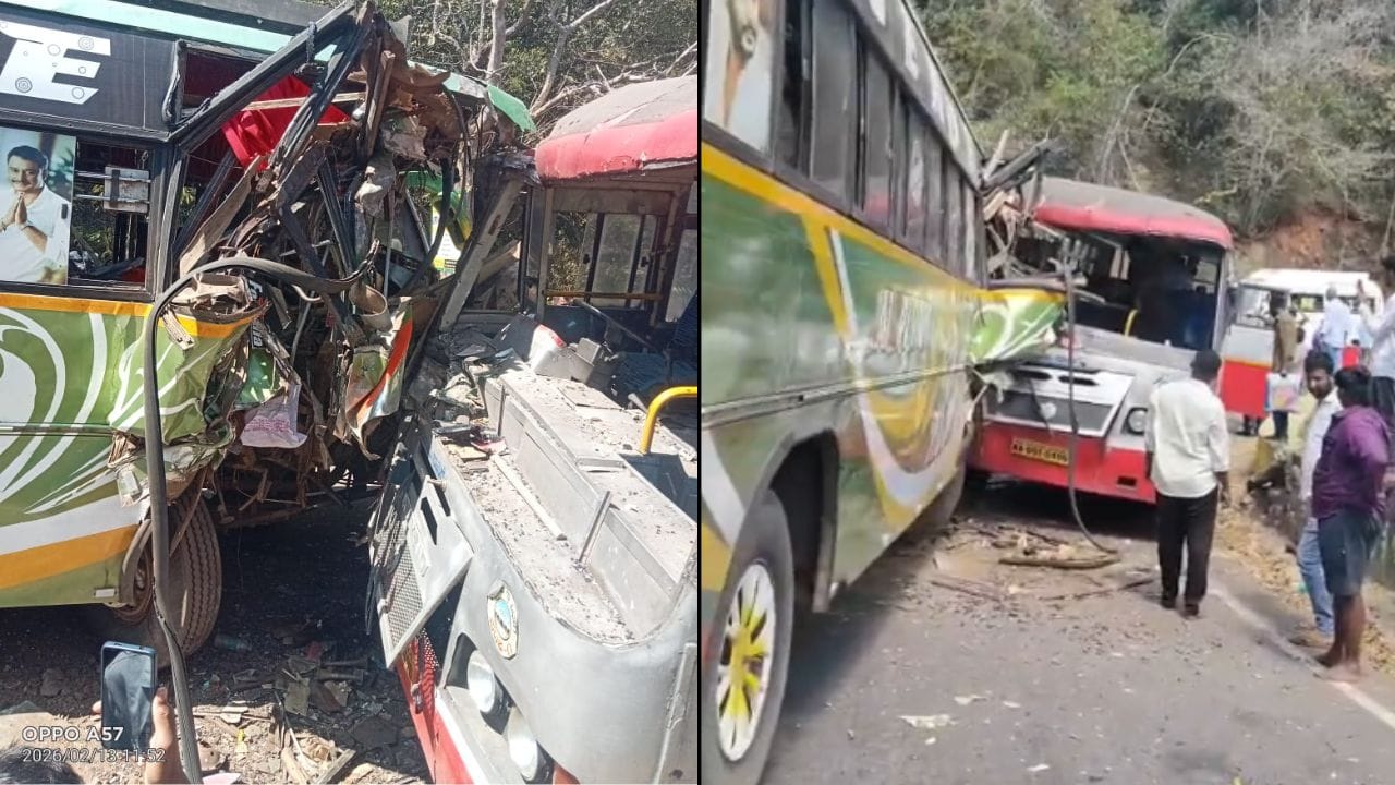 ಮಹದೇಶ್ವರ ಬೆಟ್ಟದ ಜಾತ್ರೆ ಸಮಯದಲ್ಲಿ ಭೀಕರ ರಸ್ತೆ ಅಪಘಾತ ಸಂಭವಿಸಿದೆ. ಹನೂರು ತಾಲೂಕಿನ 4ನೇ ತಿರುವಿನಲ್ಲಿ ಕೆಎಸ್ಆರ್ಟಿಸಿ ಬಸ್ ಮತ್ತು ಖಾಸಗಿ ಬಸ್ ಮುಖಾಮುಖಿ ಡಿಕ್ಕಿ ಹೊಡೆದಿದ್ದು, 20ಕ್ಕೂ ಹೆಚ್ಚು ಪ್ರಯಾಣಿಕರು ಗಾಯಗೊಂಡ