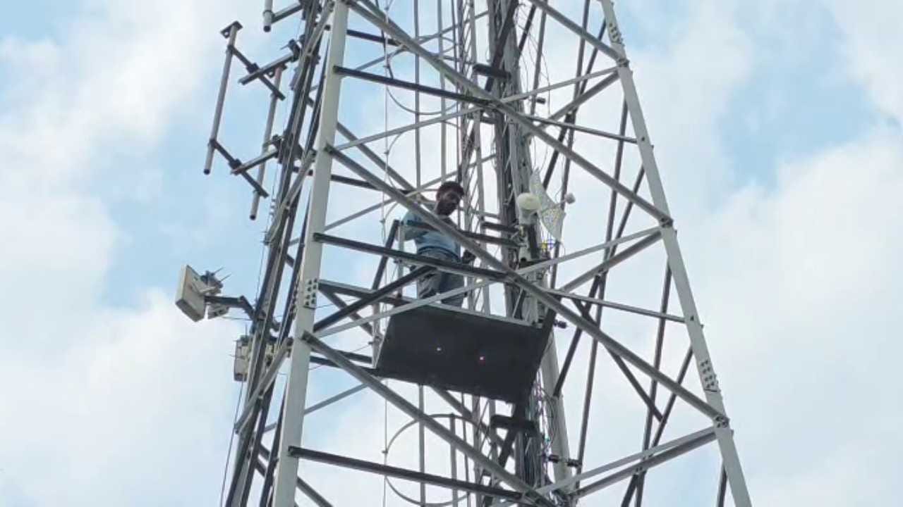 ಬಾಡಿಗೆ ವಿಚಾರದಲ್ಲಿ ನಡೆದ ಗಲಾಟೆ ಹಿನ್ನೆಲೆ ಯುವಕನೊಬ್ಬ ಟೆಲಿಫೋನ್ ಟವರ್ ಏರಿ ಆತಂಕ ಸೃಷ್ಟಿಸಿದ ಘಟನೆ ನವನಗರದಲ್ಲಿ ನಡೆದಿದೆ. ನಿನ್ನೆ ಬಾಡಿಗೆ ವಿಚಾರದಲ್ಲಿ ತೀವ್ರ ವಾಗ್ವಾದ ನಡೆದಿತ್ತು ಎನ್ನಲಾಗಿದೆ. ಸೆಕ್ಟರ್ 35ರ ಮನೆಯ ಮ