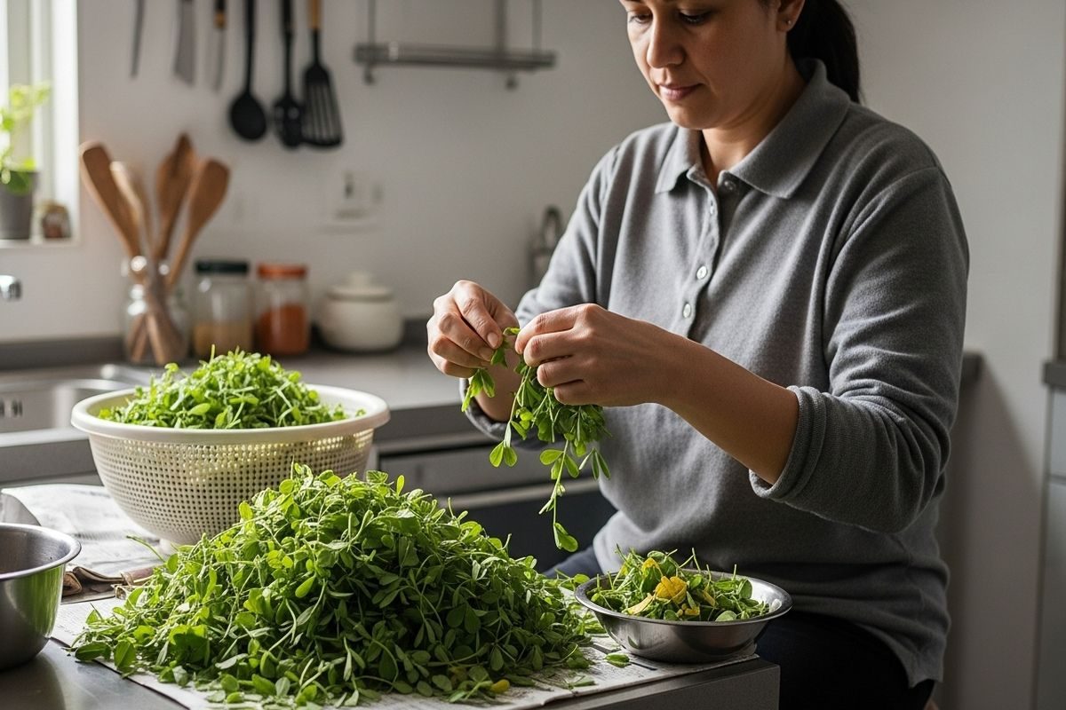 ಚಳಿಗಾಲದಲ್ಲಿ ಮೆಂತ್ಯ, ಪಾಲಕ್, ಚಿಲ್ಲಕರವೆ ಸೊಪ್ಪು ಆರೋಗ್ಯಕ್ಕೆ ಉತ್ತಮ. ಮೆಂತ್ಯ ಸೊಪ್ಪು ಸ್ವಚ್ಛಗೊಳಿಸಲು ಸರಳ ವಿಧಾನ ಅನುಸರಿಸಿ ಸಮಯ ಉಳಿಸಬಹುದು, ರುಚಿ ಹಾಗೂ ಆರೋಗ್ಯ ಕಾಪಾಡಬಹುದು.