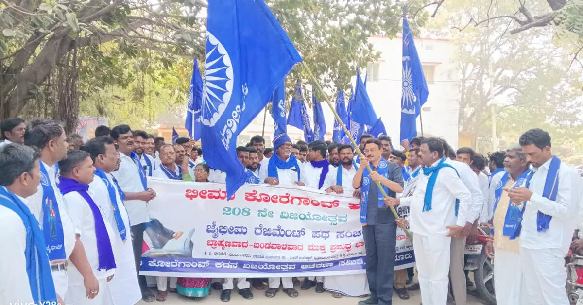 ಕಲಬುರಗಿ: ಕಲಬುರಗಿ ನಗರ ಸೇರಿದಂತೆ ಜಿಲ್ಲಾದ್ಯಂತ ವಿವಿಧ ತಾಲೂಕು, ಹೋಬಳಿಗಳಲ್ಲಿ 208ನೇ ವರ್ಷದ ಭೀಮಾ ಕೋರೆಗಾಂವ್ ವಿಜಯೋತ್ಸವ ಆಚರಣೆ ಮಾಡಲಾಯಿತು. ನಗರದ ಜಗತ್ ವೃತ್ತದಲ್ಲಿರುವ ಸಂವಿಧಾನ ಶಿಲ್ಪಿ ಭಾರತ ರತ್ನ ಡಾ.ಬಿ.ಆರ್.ಅಂಬೇಡ್