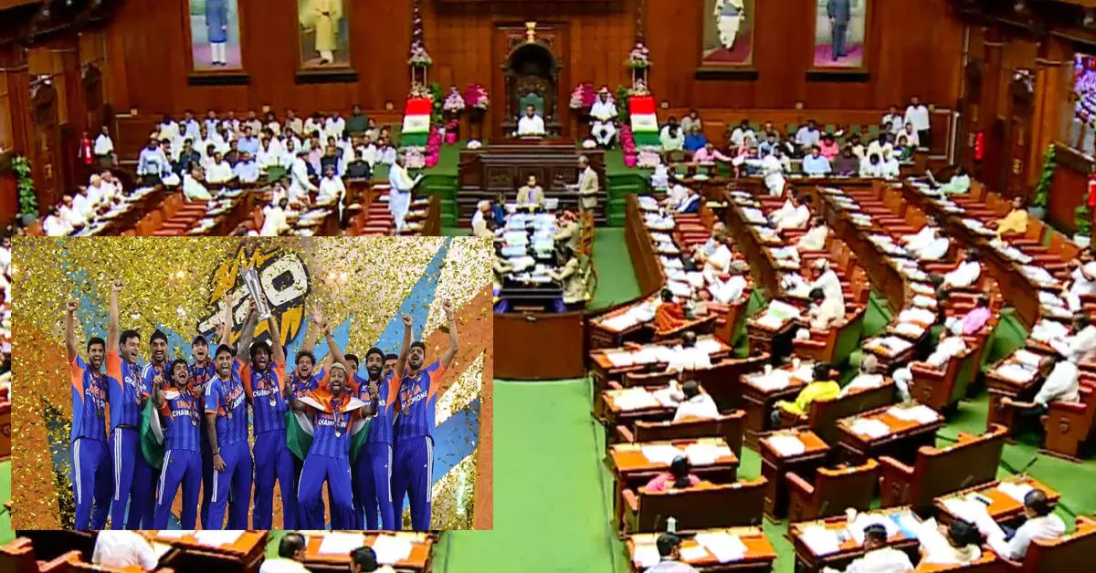 ಬೆಂಗಳೂರು : ಸತತ ಎರಡನೇ ಬಾರಿಗೆ ಟಿ-20 ವಿಶ್ವಕಪ್ ಟ್ರೂಫಿ ಗೆದ್ದ ಭಾರತ ತಂಡಕ್ಕೆ ವಿಧಾನಸಭೆ ಕಲಾಪದಲ್ಲಿ ಅಭಿನಂದನೆ ಸಲ್ಲಿಸಲಾಯಿತು. ಸೋಮವಾರ ವಿಧಾನಸಭೆಯಲ್ಲಿ ಸಂತಾಪ ಸೂಚನೆ ನಿರ್ಣಯ ಮಂಡನೆ ಬಳಿಕ ಜೆಡಿಎಸ್ ಸದಸ್ಯ ಸಿ.ಎನ್.ಬಾಲಕ