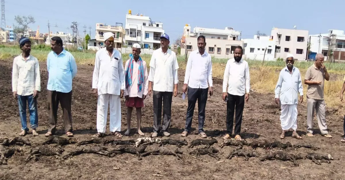 ಬೆಳಗಾವಿ : ಹುಕ್ಕೇರಿ ತಾಲ್ಲೂಕಿನ ಸಂಕೇಶ್ವರ ಸುತ್ತಮುತ್ತ ಮಂಗಳವಾರ ರಾತ್ರಿ ಸುರಿದ ಭಾರೀ ಆಲಿಕಲ್ಲು ಮಳೆಯ ರಭಸಕ್ಕೆ 39 ಕುರಿಗಳು ಸಾವನ್ನಪ್ಪಿದ ಘಟನೆ ನಡೆದಿದೆ. ಸಂಕೇಶ್ವರದ ಕುರಿಗಾಹಿ ಶಂಕರ ಕರಜಗಿ ಅವರಿಗೆ ಸೇರಿದ ಕುರಿಗಳನ್