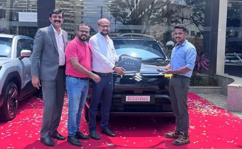 ಮಂಗಳೂರು : ನೆಕ್ಸಾ ಭಾರತ್ ಆಟೋ ಕಾರ್ಸ್ ಪ್ರೈ.ಲಿ.ನಲ್ಲಿ ಕರಾವಳಿ ಕರ್ನಾಟಕದ ಮೊದಲ ಎಲೆಕ್ಟ್ರಿಕ್ ಮಾರುತಿ ಸುಝಕಿ ಇ-ವಿಟಾರಾ ಕಾರಿನ ಮೊದಲ ಗ್ರಾಹಕರಿಗೆ ಕೀ ಹಸ್ತಾಂತರ ಮಾಡಲಾಯಿತು. ಶಂಕರ್ ನಾರಾಯಣ ಕಣ್ಣಂತ ಹಾಗೂ ಅಮರ್ ಇನ್ಫ್ರಾ
