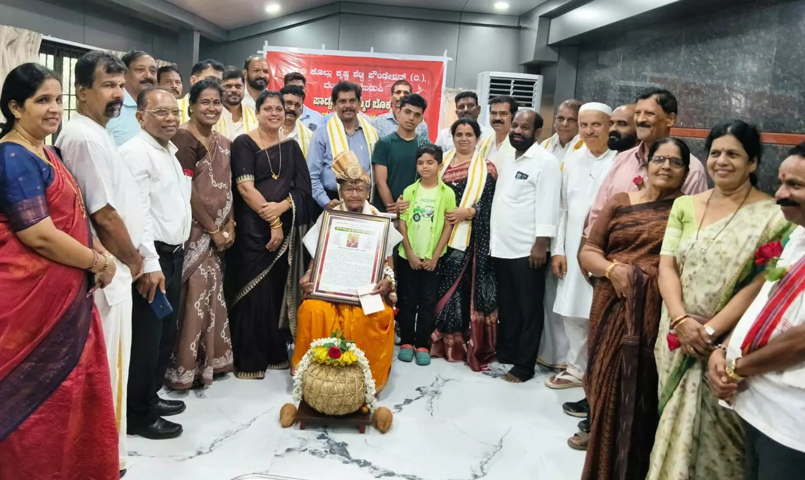ಉಡುಪಿ, ಎ.17: ದೆಂದೂರಿನ ಕೊಲ್ಲುಕೃಷ್ಣ ಶೆಟ್ಟಿ ಫೌಂಡೇಶನ್ ವತಿಯಿಂದ ಬ್ರಹ್ಮಗಿರಿ ಪ್ರಧಾನ್ ಹೊಟೇಲ್ ಸಭಾಂಗಣದಲ್ಲಿ ನಡೆದ ಸಮಾರಂಭದಲ್ಲಿ ಕರ್ನಾಟಕ ರಾಜ್ಯೋತ್ಸವ ಮತ್ತು ಜನಪದ ಅಕಾಡೆಮಿ ಪ್ರಶಸ್ತಿ ವಿಜೇತ ಪಾಡ್ದನ ಕಲಾವಿದೆ ಸಿಂ