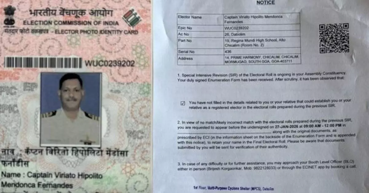 ಪಣಜಿ, ಜ. 8: ಭಾರತೀಯ ಚುನಾವಣಾ ಆಯೋಗ (ಇಸಿಐ)ದಿಂದ ತಾನು ನೋಟಿಸ್ ಸ್ವೀಕರಿಸಿದ್ದೇನೆ ಎಂದು ದಕ್ಷಿಣ ಗೋವಾದ ಕಾಂಗ್ರೆಸ್ ಸಂಸದ ವಿರಿಯಾಟೊ ಫೆರ್ನಾಂಡಿಸ್ ಹೇಳಿದ್ದಾರೆ. ಮತದಾರರ ಪಟ್ಟಿಯಲ್ಲಿ ಹೆಸರು ಉಳಿಸಿಕೊಳ್ಳಲು ಗುರುತು ಸಾಬೀ