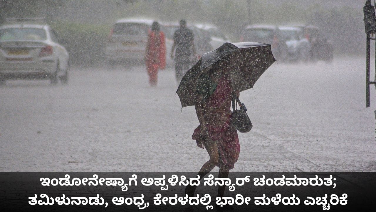 ಸೆನ್ಯಾರ್ ಚಂಡಮಾರುತ ಇಂಡೋನೇಷ್ಯಾವನ್ನು ಅಪ್ಪಳಿಸಿದೆ. ಇದರ ಪರಿಣಾಮವಾಗಿ ತಮಿಳುನಾಡು, ಕೇರಳ, ಆಂಧ್ರಪ್ರದೇಶಗಳಲ್ಲಿ ಭಾರೀ ಮಳೆಯಾಗಲಿದೆ ಎಂದು ಹವಾಮಾನ ಇಲಾಖೆ ಮುನ್ಸೂಚನೆ ನೀಡಿದೆ. ಮಲಕ್ಕಾ ಜಲಸಂಧಿ ಮತ್ತು ಈಶಾನ್ಯ ಇಂಡೋನೇಷ