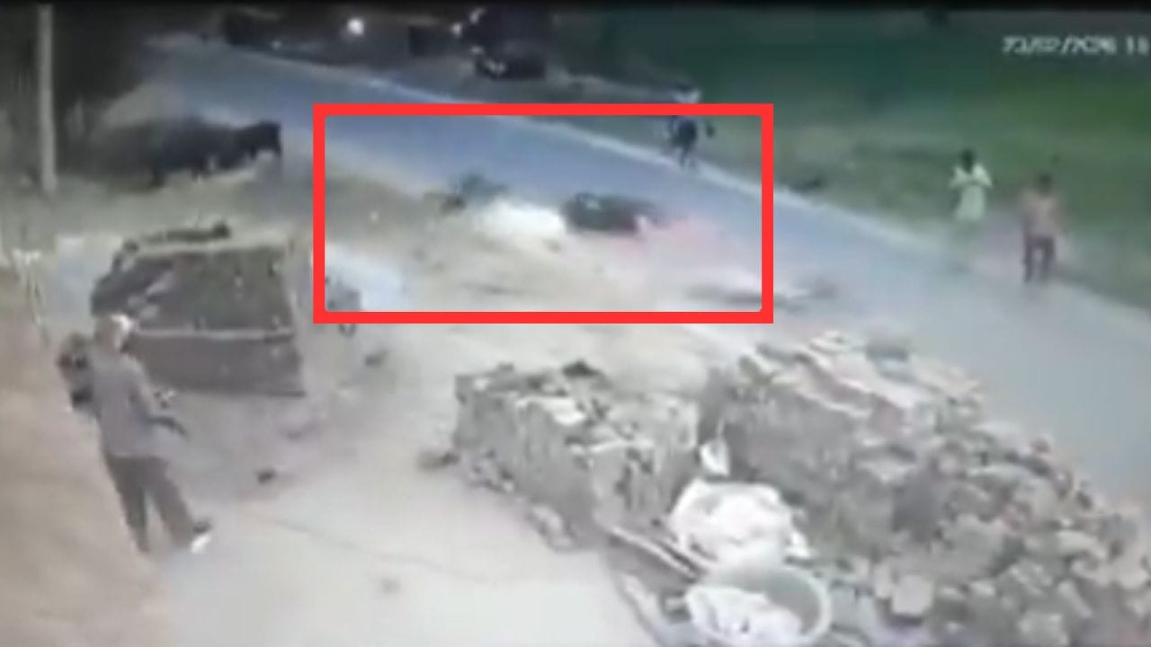 ಬಿಶುನ್ಪುರ ವ್ಯಾಪ್ತಿಯ ದೇವೀಪುರದಲ್ಲಿ ಅತಿ ವೇಗವಾಗಿ ಬಂದ ಬೈಕ್ ಸವಾರ ರಸ್ತೆ ದಾಟುತ್ತಿದ್ದ ಹಸುವಿಗೆ ಡಿಕ್ಕಿ ಹೊಡೆದಿದ್ದಾನೆ. ಈ ಭೀಕರ ಅಪಘಾತದಲ್ಲಿ ಬೈಕ್ ಸವಾರ ಮತ್ತು ಹಸು ಇಬ್ಬರಿಗೂ ಗಂಭೀರ ಗಾಯಗಳಾಗಿವೆ. ವೇಗದ ಚಾಲನೆ ಬ