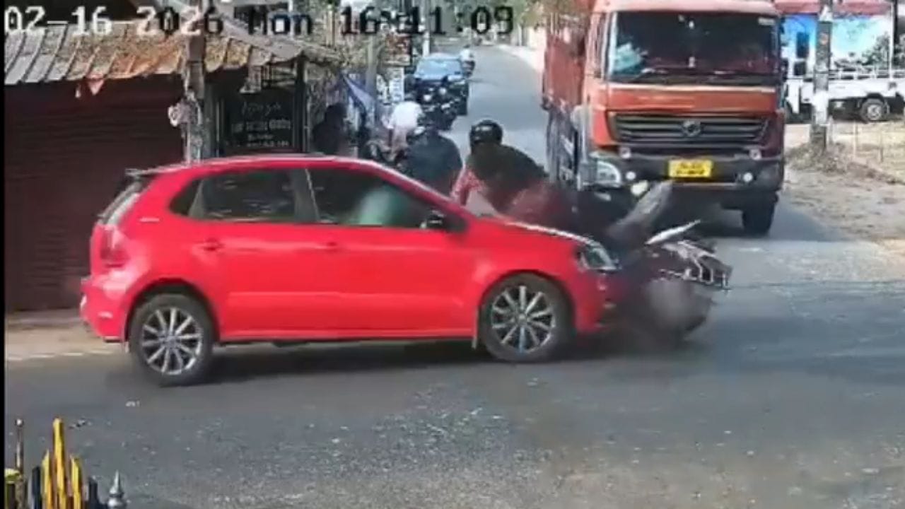 ಮಡಕ್ಕಲ್ ಜಂಕ್ಷನ್ನಲ್ಲಿ ನಡೆದ ಭೀಕರ ಅಪಘಾತದ ದೃಶ್ಯಗಳು ಸಾಮಾಜಿಕ ಜಾಲತಾಣಗಳಲ್ಲಿ ವೈರಲ್ ಆಗಿವೆ. ರಸ್ತೆ ದಾಟುತ್ತಿದ್ದ ಸ್ಕೂಟರ್ ಸವಾರ ಮಹಿಳೆಗೆ ವೇಗವಾಗಿ ಬಂದ ಕೆಂಪು ಕಾರು ಡಿಕ್ಕಿ ಹೊಡೆದಿದೆ. ಅಪಘಾತದ ತೀವ್ರತೆಗೆ ಮಹಿಳೆ