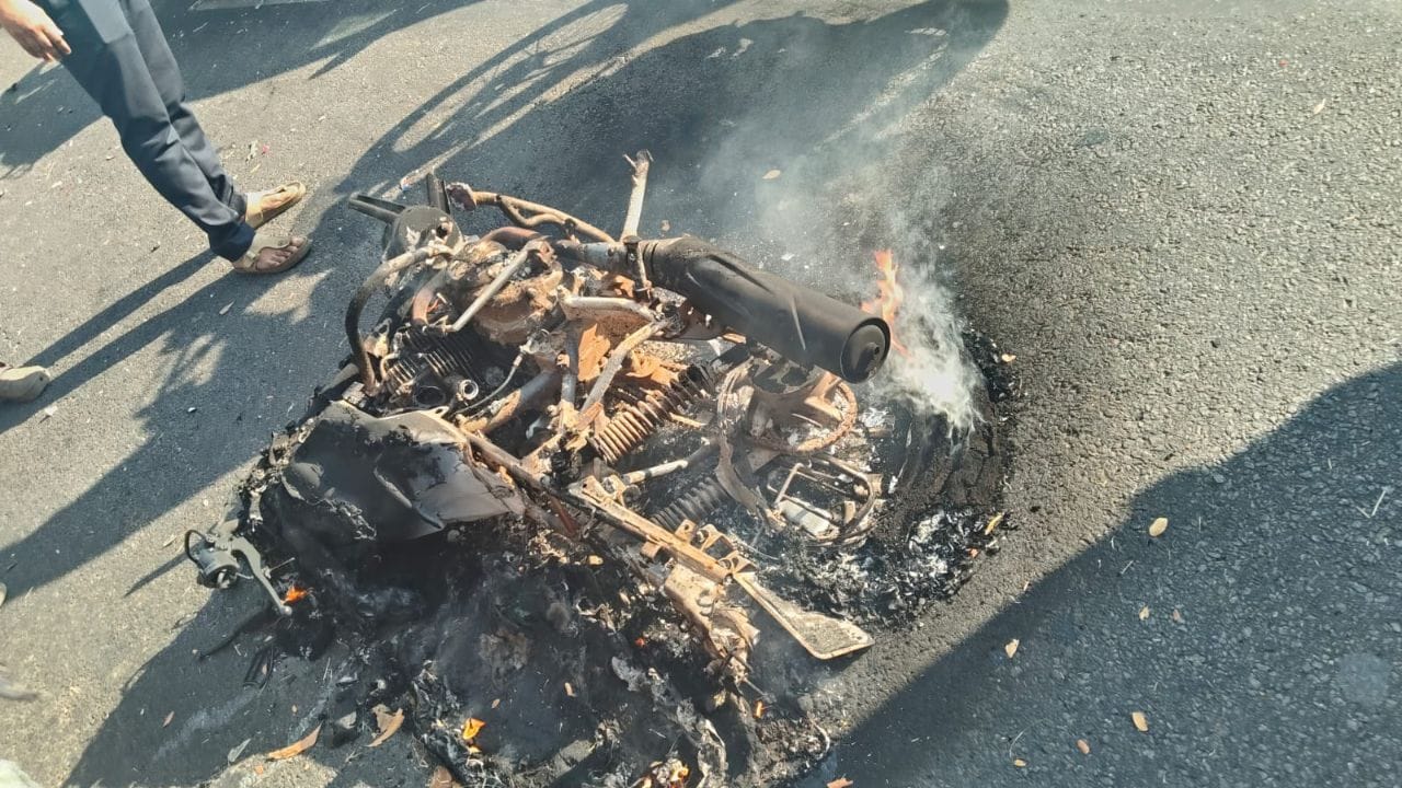 ರಾಯ್ಪುರದಲ್ಲಿ ಪೆಟ್ರೋಲ್ ಪಂಪ್ನಲ್ಲಿ ಸಿಗರೇಟ್ ಹಚ್ಚಬೇಡಿ ಎಂದು ಹೇಳಿದ್ದಕ್ಕೆ ವ್ಯಕ್ತಿಯೊಬ್ಬ ತನ್ನ ಸ್ವಂತ ಬೈಕ್ಗೆ ಬೆಂಕಿ ಹಚ್ಚಿಕೊಂಡಿದ್ದಾನೆ. ಬೆಂಕಿ ನಿಯಂತ್ರಣಕ್ಕೆ ಬಂದ ನಂತರ, ಇಬ್ಬರು ವ್ಯಕ್ತಿಗಳು ಓಡಿಹೋಗಲು ಪ