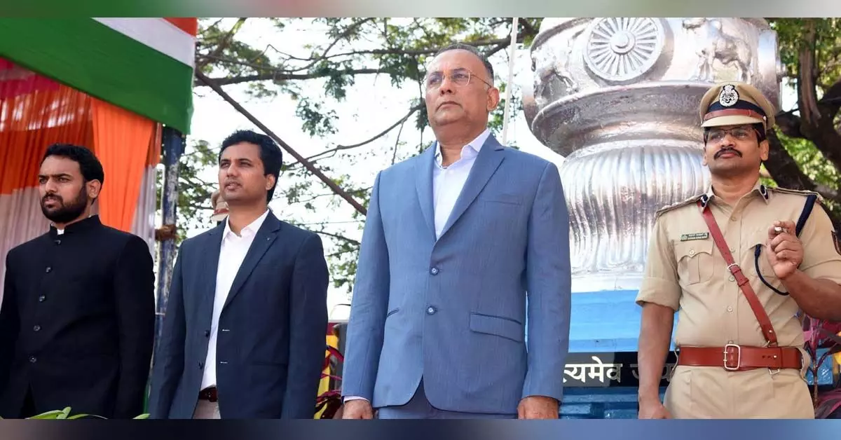 ಬಳ್ಳಾರಿ,ಜ.26: 77ನೇ ಗಣರಾಜ್ಯೋತ್ಸವದ ಅಂಗವಾಗಿ ಪೌರಡಳಿತ ಮತ್ತು ಹಜ್ ಸಚಿವ ರಹೀಂ ಖಾನ್ ಅವರು ನಗರದ ಹೆಚ್.ಆರ್.ಗವಿಯಪ್ಪ ವೃತ್ತದ 150 ಅಡಿ ಎತ್ತರದ ಬೃಹತ್ ಧ್ವಜ ಸ್ತಂಭದಲ್ಲಿ ಸೋಮವಾರ ಧ್ವಜಾರೋಹಣ ನೆರವೇರಿಸಿದರು. ಇದಕ್ಕೂ ಮುನ್ನ ನ