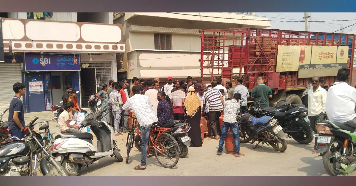 ವಾಡಿ : ಪಟ್ಟಣದಲ್ಲಿ ಪ್ರಸ್ತುತ ಎಲ್ಪಿಜಿ ಸಿಲಿಂಡರ್ ಕೊರತೆ ಇಲ್ಲದಿದ್ದರೂ ಮುಂದಿನ ದಿನಗಳಲ್ಲಿ ಅಭಾವ ಉಂಟಾಗಬಹುದು ಎಂಬ ಭೀತಿಯಿಂದ ಪಟ್ಟಣದ ಗುರು ಗ್ಯಾಸ್ ಏಜೆನ್ಸಿ ಮಳಿಗೆ ಮುಂದೆ ರವಿವಾರ ನೂರಾರು ಗ್ರಾಹಕರು ಹಾಗೂ ಸುತ್ತಮು