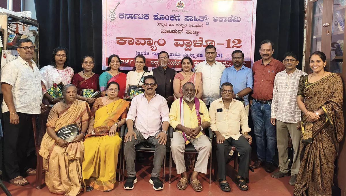 ಮಂಗಳೂರು, ಮಾ.15:ಕರ್ನಾಟಕ ಕೊಂಕಣಿ ಸಾಹಿತ್ಯ ಅಕಾಡೆಮಿಯಿಂದ‘ಕಾವ್ಯಾಂ ವ್ಹಾಳೊ-12’ - ಕೊಂಕಣಿ ಕವಿಗೋಷ್ಠಿ ಅಕಾಡೆಮಿ ಸಭಾಂಗಣದಲ್ಲಿ ನಡೆಯಿತು. ಅಕಾಡೆಮಿ ಅಧ್ಯಕ್ಷ ಜೋಕಿಂ ಸ್ಟ್ಯಾನಿ ಆಲ್ವಾರಿಸ್ ಕಾರ್ಯಕ್ರಮದ ಅಧ್ಯಕ್ಷತೆ ವಹಿಸಿ ಮ