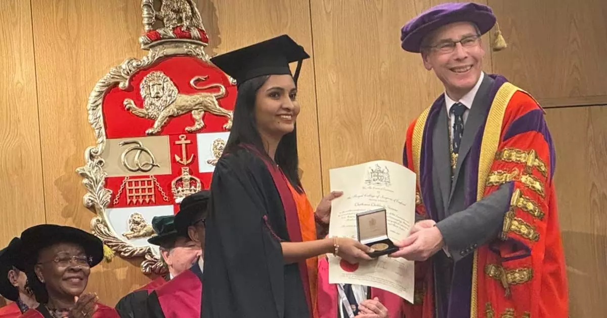 ಕಾಸರಗೋಡು: ಕಾಸರಗೋಡು ಸಮೀಪದ ಮೇಲ್ಪರಂಬ ನಿವಾಸಿ ಡಾ. ಚೇತನಾ ಸಿ.ಎಸ್. ಅವರು ಎಂ.ಆರ್.ಸಿ.ಎಸ್. (ಇ.ಎನ್.ಟಿ) ಪರೀಕ್ಷೆಯಲ್ಲಿ ಶೇ. 92 ಅಂಕಗಳನ್ನು ಗಳಿಸಿ ಜಾಗತಿಕ ಮಟ್ಟದಲ್ಲಿ ಪ್ರಥಮ ಸ್ಥಾನ ಪಡೆದು ಇಂಗ್ಲೆಂಡಿನ ರಾಯಲ್ ಕಾಲೇಜ್ ಆಫ್ ಸರ್ಜ