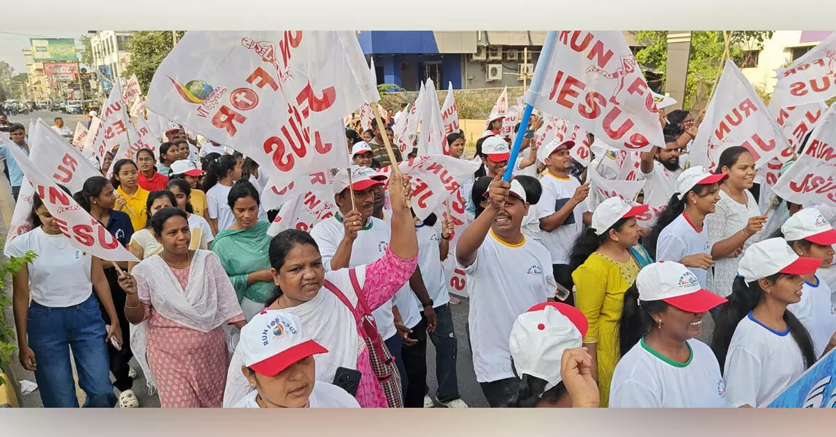 ರಾಯಚೂರು : ನಗರದಲ್ಲಿ ಶನಿವಾರ ಕ್ರೈಸ್ತ ಸಮುದಾಯದ ವತಿಯಿಂದ “ರನ್ ಫಾರ್ ಜೀಸಸ್” ರ್ಯಾಲಿಯನ್ನು ಆಯೋಜಿಸಲಾಯಿತು. ವಿವಿಧ ಚರ್ಚುಗಳಿಂದ ಸಮಾವೇಶಗೊಂಡ ಕ್ರೈಸ್ತ ಬಾಂಧವರು ವಿಶ್ವಶಾಂತಿಯಿಗಾಗಿ ರ್ಯಾಲಿ ನಡೆಸಿದರು. ಕ್ರಿಸ್ತನ