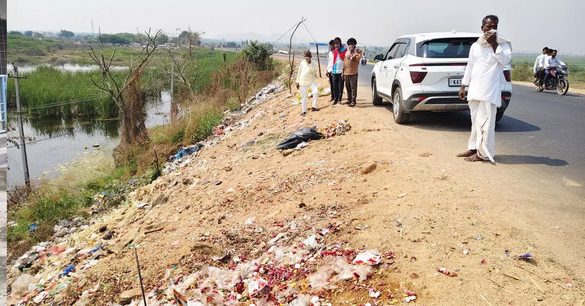 ಯಾದಗಿರಿ: ಜಿಲ್ಲಾ ಕೇಂದ್ರಕ್ಕೆ ಸಂಪರ್ಕ ಕಲ್ಪಿಸುವ ಸಿಂದಗಿ-ಹೈದರಾಬಾದ್ ರಾಜ್ಯ ಹೆದ್ದಾರಿ ಇದೀಗ ದುರ್ವಾಸನೆಯ ಮಾರ್ಗವಾಗಿ ಪರಿಣಮಿಸಿರುವುದು ಆತಂಕಕಾರಿ ಬೆಳವಣಿಗೆಯಾಗಿದೆ. ಹೆದ್ದಾರಿ ಅಕ್ಕಪಕ್ಕದಲ್ಲಿ ಕೋಳಿ ತ್ಯಾಜ್ಯವನ್ನ