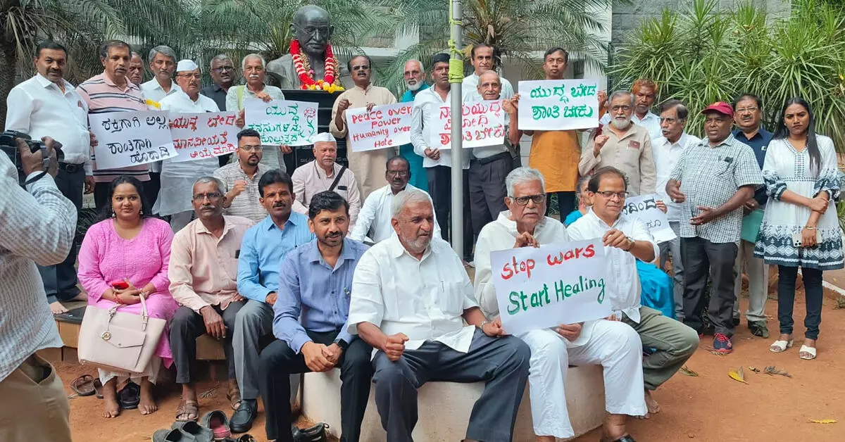 ಬೆಂಗಳೂರು: ಕರ್ನಾಟಕ ಸಮಾಜವಾದಿ ಸಂಘಟನೆಯ ವತಿಯಿಂದ 'ಯುದ್ಧ ವಿರೋಧಿ ಸತ್ಯಾಗ್ರಹ'ವು ಶನಿವಾರ ಅಪರಾಹ್ನ ನಗರದ ಶಿವಾನಂದ ವೃತ್ತದ ಬಳಿಯರುವ ಗಾಂಧಿ ಭವನದಲ್ಲಿ ನಡೆಯಿತು. ರಾಜ್ಯ ಯೋಜನಾ ಆಯೋಗದ ಉಪಾಧ್ಯಕ್ಷ ಹಾಗೂ ಆಳಂದ ಕ್ಷೇತ್ರದ ಶ