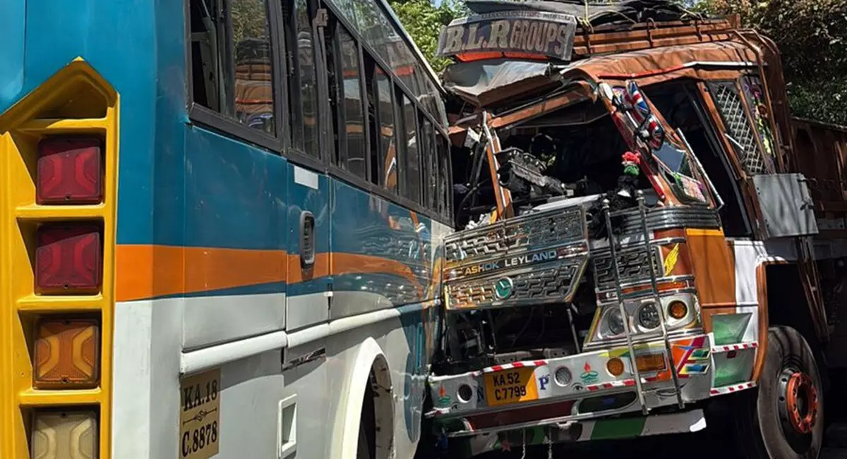ಗುರುಪುರ : ಬೆಳ್ಳಿಬೆಟ್ಟು ಬಸ್ ನಿಲ್ದಾಣದ ಬಳಿ ಖಾಸಗಿ ಬಸ್ ಮತ್ತು ಲಾರಿಯ ನಡುವೆ ಅಪಘಾತ ನಡೆದು ಚಾಲಕರಿಬ್ಬರೂ ಗಂಭೀರ ಗಾಯಗೊಂಡಿರುವ ಘಟನೆ ಬುಧವಾರ ವರದಿಯಾಗಿದೆ. ಮಂಗಳೂರಿನಿಂದ ಕಾರ್ಕಳದತ್ತ ಸಾಗುತ್ತಿದ್ದ ಖಾಸಗಿ ಬಸ್ ಮತ್ತು