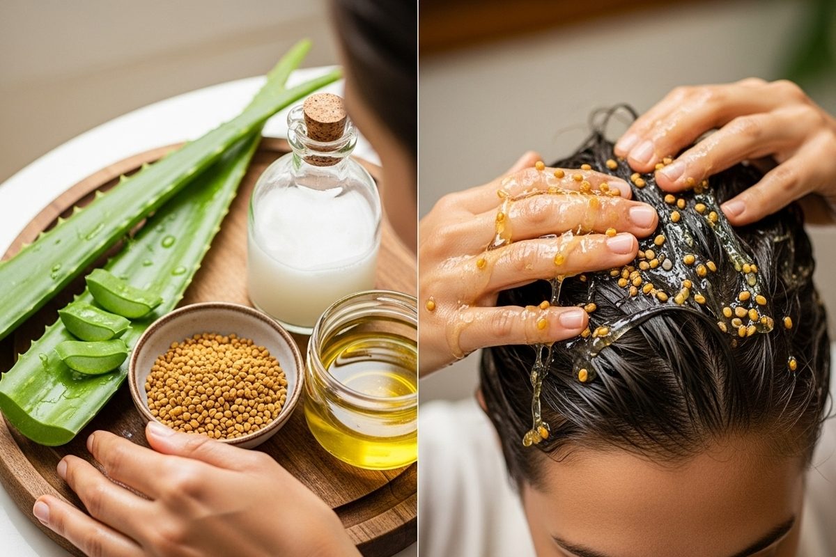 ಅಲೋವೆರಾ ಮತ್ತು ಮೆಂತ್ಯ ಎಣ್ಣೆಯ ಸಂಯೋಜನೆ ಕೂದಲಿನ ಬೆಳವಣಿಗೆ, ದಪ್ಪ, ಕಪ್ಪು ಮತ್ತು ಆರೋಗ್ಯಕ್ಕೆ ಸಹಾಯ ಮಾಡುತ್ತದೆ ಎಂದು ಇನ್‌ಸ್ಟಾಗ್ರಾಮ್ ಪೋಸ್ಟ್‌ನಲ್ಲಿ ತಿಳಿಸಲಾಗಿದೆ.