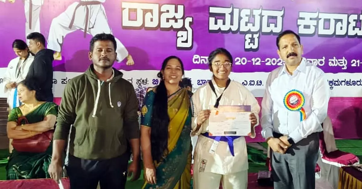 ಬೀದರ್: 2025–26ನೇ ಸಾಲಿನ ಶಾಲಾ ಶಿಕ್ಷಣ ಇಲಾಖೆಯ ಪದವಿ ಪೂರ್ವ ವಿದ್ಯಾರ್ಥಿಗಳ ರಾಜ್ಯಮಟ್ಟದ ಕ್ರೀಡಾಕೂಟದಲ್ಲಿ ಬೀದರ್ ಜಿಲ್ಲೆಯ ವಿದ್ಯಾರ್ಥಿನಿ ಐಶ್ವರ್ಯ ಅವರು ಕರಾಟೆ ಸ್ಪರ್ಧೆಯಲ್ಲಿ ತೃತೀಯ ಸ್ಥಾನ ಪಡೆದು ಜಿಲ್ಲೆಗೆ ಕೀರ್ತಿ ತ