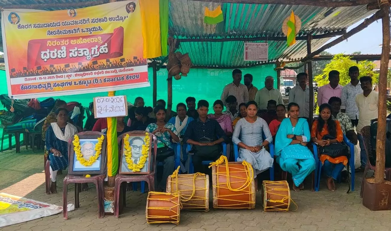 ಉಡುಪಿ, ಜ.8: ಕೊರಗ ಅಭಿವೃದ್ಧಿ ಸಂಘಗಳ ಒಕ್ಕೂಟ ಕರ್ನಾಟಕ-ಕೇರಳ ನೇತೃತ್ವದಲ್ಲಿ ಕೊರಗ ಸಮುದಾಯದ ಯುವ ಜನತೆಗೆ ಸರಕಾರಿ ಉದ್ಯೋಗಗಳಲ್ಲಿ ನೇರ ನೇಮಕಾತಿ ಒದಗಿಸುವಂತೆ ಒತ್ತಾಯಿಸಿ ಉಡುಪಿ ಜಿಲ್ಲಾಧಿಕಾರಿ ಕಚೇರಿ ಮುಂದೆ ಹಮ್ಮಿಕೊಳ್ಳ