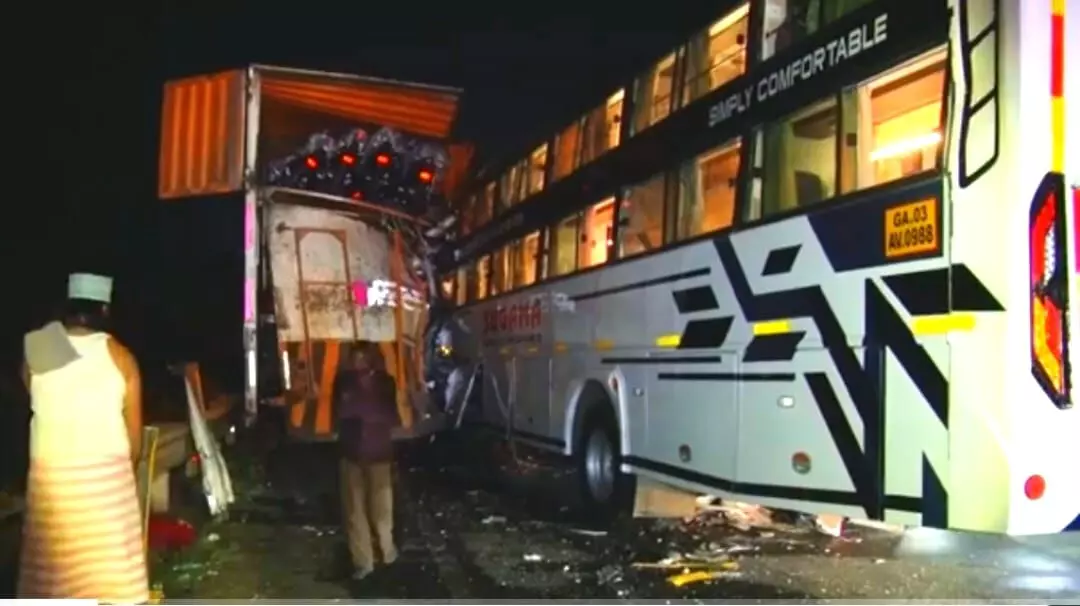 ಚಿಕ್ಕಬಳ್ಳಾಪುರ: ಕಂಟೈನರ್ ಟ್ರಕ್ ಹಾಗೂ ಸ್ಲೀಪರ್ ಕೋಚ್ ಬಸ್ ನಡುವೆ ಸಂಭವಿಸಿದ ಅಪಘಾತದಲ್ಲಿ ಓರ್ವ ಮೃತಪಟ್ಟು, 11 ಮಂದಿ ಬಸ್ ಪ್ರಯಾಣಿಕರು ಗಾಯಗೊಂಡ ಘಟನೆ ಮಂಗಳವಾರ ಮುಂಜಾನೆ 2 ಗಂಟೆ ಸುಮಾರಿಗೆ ನಗರ ಹೊರವಲಯದ ರಾಷ್ಟ್ರೀಯ ಹೆದ್ದ