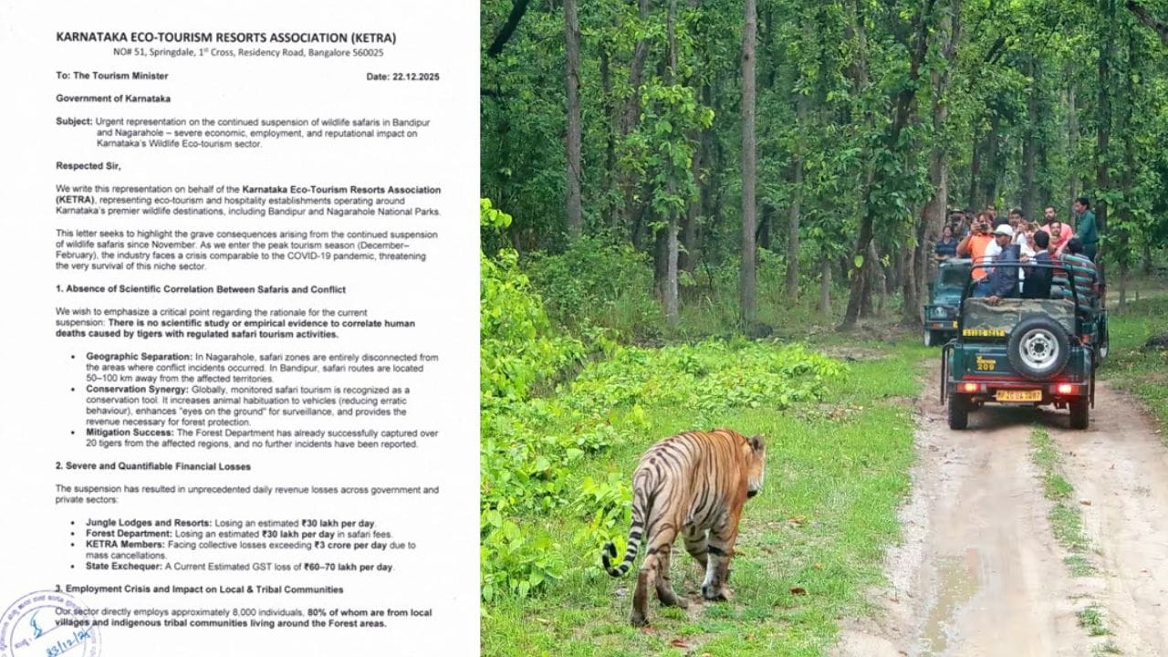 ಕರ್ನಾಟಕದಲ್ಲಿ ವನ್ಯಜೀವಿ ಸಫಾರಿ ನಿಷೇಧದಿಂದ ಪ್ರವಾಸೋದ್ಯಮ ತೀವ್ರ ಸಂಕಷ್ಟದಲ್ಲಿದೆ. ಬಂಡೀಪುರ, ನಾಗರಹೊಳೆಗಳಲ್ಲಿ ಸಫಾರಿ ಸ್ಥಗಿತದಿಂದ ಪ್ರತಿದಿನ ಕೋಟಿಗಟ್ಟಲೆ ಆದಾಯ ನಷ್ಟವಾಗುತ್ತಿದೆ. ಈ ಬಗ್ಗೆ ಪ್ರವಾಸೋದ್ಯಮ ಸಚಿವರಿಗ