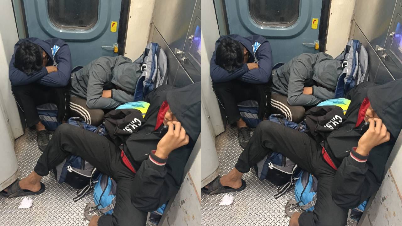 ಒಡಿಶಾದಲ್ಲಿ ಅಮಾನವೀಯ ಘಟನೆಯೊಂದು ನಡೆದಿದೆ. 69ನೇ ರಾಷ್ಟ್ರೀಯ ಶಾಲಾ ಕುಸ್ತಿ ಚಾಂಪಿಯನ್ಶಿಪ್ನಲ್ಲಿ ಸ್ಪರ್ಧಿಸಲು ಉತ್ತರ ಪ್ರದೇಶಕ್ಕೆ ಪ್ರಯಾಣಿಸಬೇಕಿದ್ದ ಒಡಿಶಾದ 18 ಯುವ ಕುಸ್ತಿಪಟುಗಳು ಟಾಯ್ಲೆಟ್ ಪಕ್ಕ ಕುಳಿತು ಪ್ರಯಾಣ