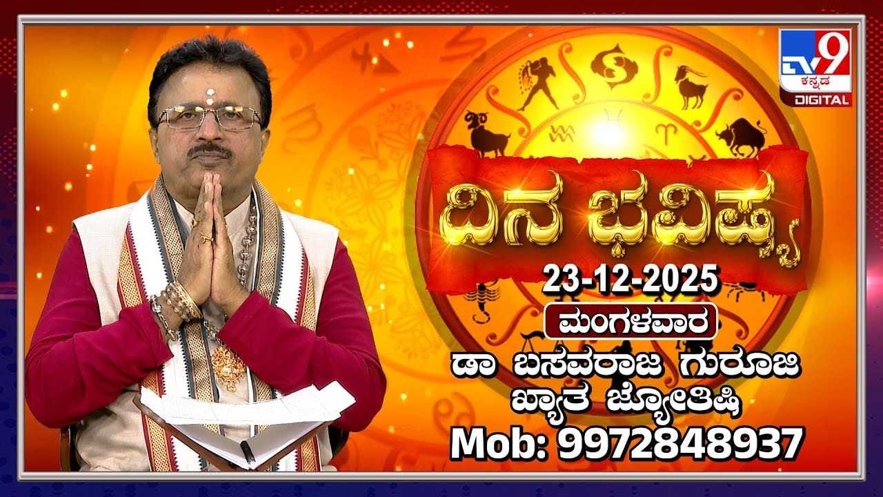 ಖ್ಯಾತ ಜ್ಯೋತಿಷಿ ಮತ್ತು ವಾಸ್ತು ಶಾಸ್ತ್ರಜ್ಞ ಡಾ. ಬಸವರಾಜ ಗುರೂಜಿ ಅವರು 2025 ಡಿಸೆಂಬರ್ 23ರ, ಮಂಗಳವಾರದ ದೈನಂದಿನ ರಾಶಿ ಭವಿಷ್ಯವನ್ನು ಟಿವಿ9 ಡಿಜಿಟಲ್ ವಾಹಿನಿಯಲ್ಲಿ ನೀಡಿದ್ದಾರೆ. ಈ ದಿನವು ವಿಶ್ವಾವಸುನಾಮ ಸಂವತ್ಸರ, ದಕ್ಷಿಣಾ