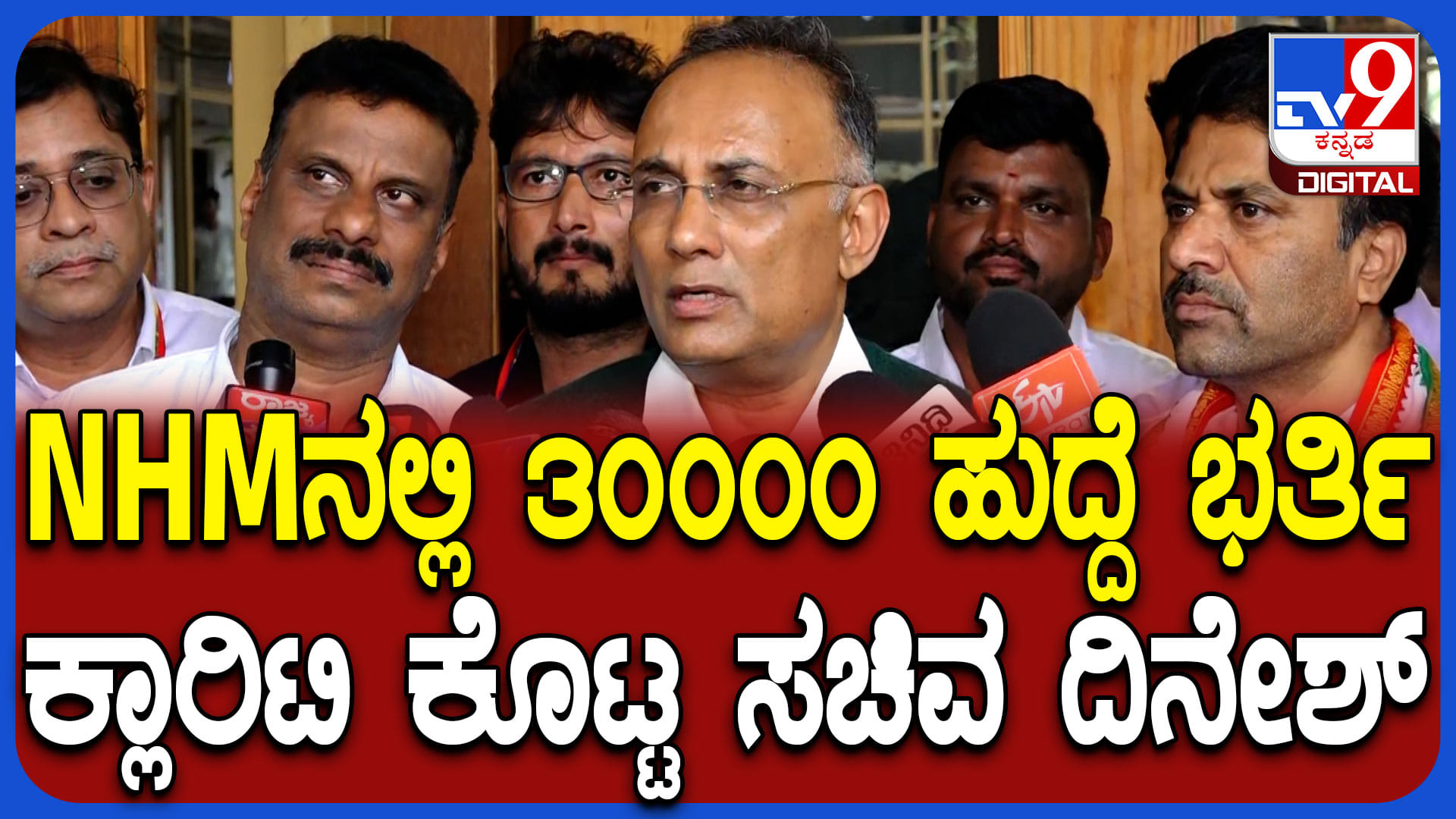 ಎನ್.ಹೆಚ್.ಎಂ.ನಲ್ಲಿ 30,000 ಹುದ್ದೆಗಳ ಮರು ನೇಮಕಾತಿ ಕುರಿತು ಸ್ಪಷ್ಟನೆ ನೀಡಿರುವ ಸಚಿವ ದಿನೇಶ್ ಗುಂಡೂರಾವ್, ಈ ಕುರಿತು ಯಾವುದೇ ಆದೇಶ ಹೊರಡಿಸಿಲ್ಲ. ಕೆಲವು ಪ್ರಪೋಸಲ್ಸ್ ಇವೆ. ಆದರೆ ಅಂತಿಮ ತೀರ್ಮಾನವಾಗಿಲ್ಲ. ಅಂತಿಮ ನಿರ್ಧಾರದ ನ