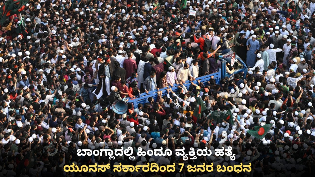 ಬಾಂಗ್ಲಾದೇಶದಲ್ಲಿ ಹಿಂದೂ ವ್ಯಕ್ತಿಯ ಮೇಲೆ ನಡೆದ ಗುಂಪು ಹಲ್ಲೆ ಪ್ರಕರಣದಲ್ಲಿ 7 ಜನರನ್ನು ಬಂಧಿಸಲಾಗಿದೆ. ಬಾಂಗ್ಲಾದೇಶ ಸರ್ಕಾರದ ಮುಖ್ಯ ಸಲಹೆಗಾರ ಮುಹಮ್ಮದ್ ಯೂನಸ್ ಈ ಘೋರ ಅಪರಾಧವನ್ನು ಖಂಡಿಸಿದ್ದಾರೆ. ಯುವ ನಾಯಕ ಷರೀಫ್ ಉಸ