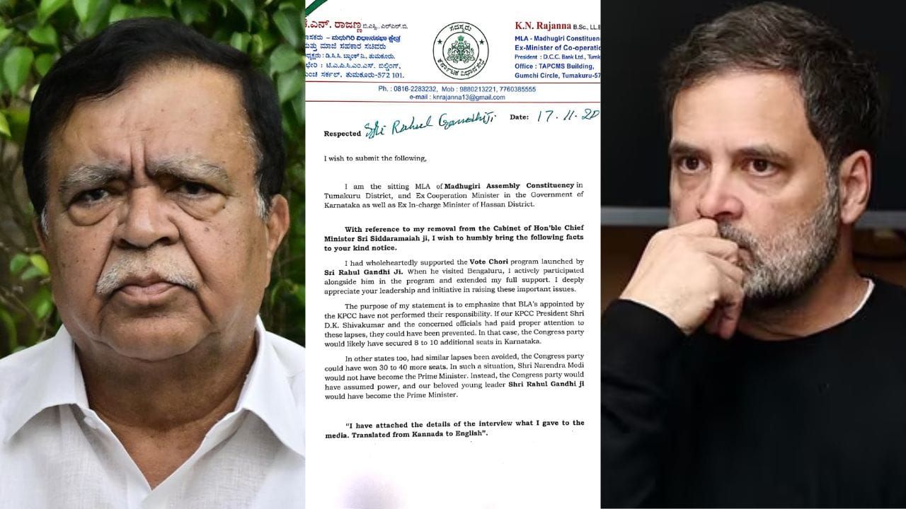 ರಾಹುಲ್ ಗಾಂಧಿಗೆ ಈಗಾಗಲೇ ನಾಲ್ಕು ಪತ್ರಗಳನ್ನು ಬರೆದಿದ್ದ ಮಾಜಿ ಸಚಿವ ಕೆ.ಎನ್. ರಾಜಣ್ಣ ಮತ್ತೊಂದು ಲೆಟರ್ ಬರೆದಿದ್ದಾರೆ.ಈ ಪತ್ರದಲ್ಲಿ ತಮ್ಮ 'ವೋಟ್ ಚೋರಿ' ಹೇಳಿಕೆಯ ಹಿಂದಿನ ಉದ್ದೇಶವನ್ನು ಅವರು ಸ್ಪಷ್ಟಪಡಿಸಿದ್ದಾರೆ. ತಮ