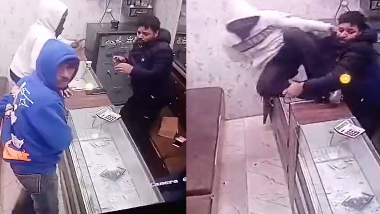 ಪಂಜಾಬ್ನ ಅಮೃತಸರದಲ್ಲಿರುವ ಆಭರಣದಂಗಡಿಯಲ್ಲಿ ಬೆಳ್ಳಂಬೆಳಗ್ಗೆ ಕದಿಯಲೆಂದು ಹೋದ ಕಳ್ಳರು ಫಜೀತಿಗೆ ಸಿಲುಕಿರುವ ಘಟನೆ ನಡೆದಿದೆ. ಸಂಧು ಕಾಲೋನಿಯಲ್ಲಿರುವ ಅಂಗಡಿಗೆ ನುಗ್ಗಿದ ದರೋಡೆಕೋರರು ಆಭರಣ ವ್ಯಾಪಾರಿಯ ಮೇಲೆ ಗುಂಡು ಹ