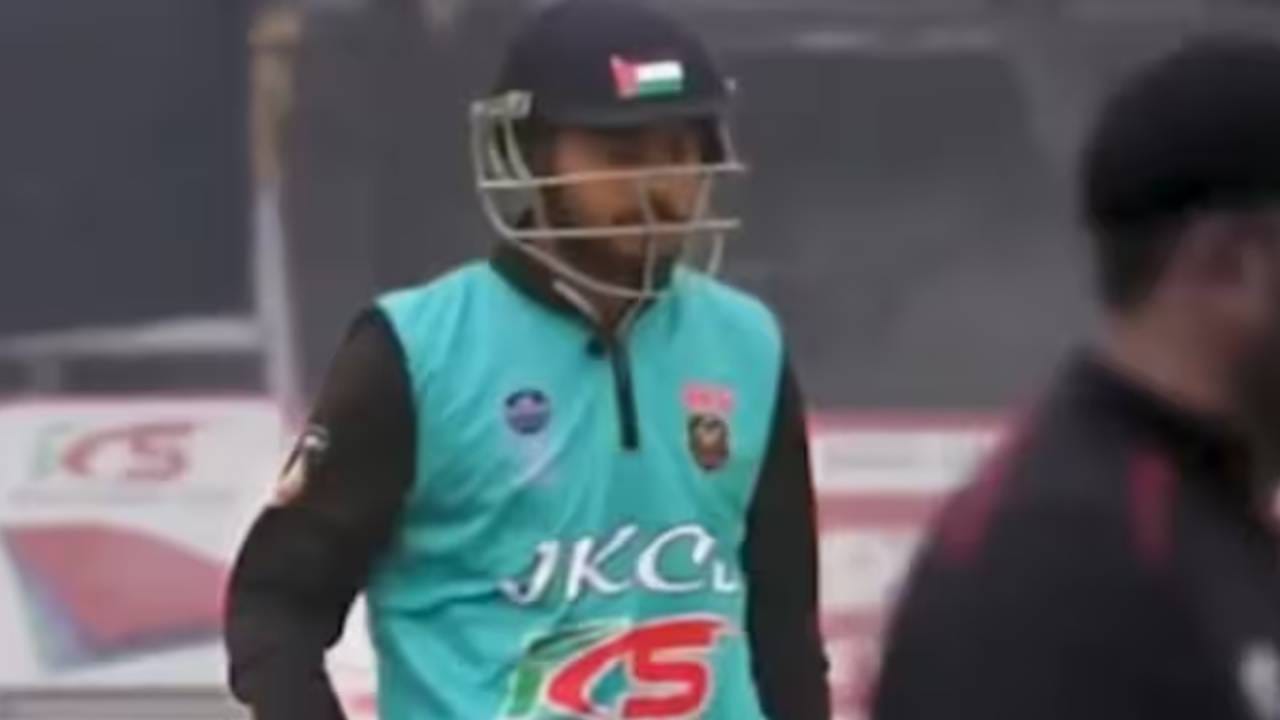 Jammu Kashmir cricketer Furqan Bhat creates controversy by wearing Palestine flag: ಸ್ಥಳೀಯ ಕಾಶ್ಮೀರೀ ಕ್ರಿಕೆಟಿಗನೊಬ್ಬ ಹೆಲ್ಮೆಟ್ ಮೇಲೆ ಪ್ಯಾಲೆಸ್ಟೀನ್ ಧ್ವಜದ ಸ್ಟಿಕರ್ ಹಾಕಿಕೊಂಡು ಆಡಿದ ವಿವಾದಾತ್ಮಕ ಘಟನೆ ನಡೆದಿದೆ. ಜಮ್ಮು ಕಾಶ್ಮೀರ ಚಾಂಪಿಯನ್ಸ್ ಲೀಗ್ ಟೂರ್ನಿಯ ಪ