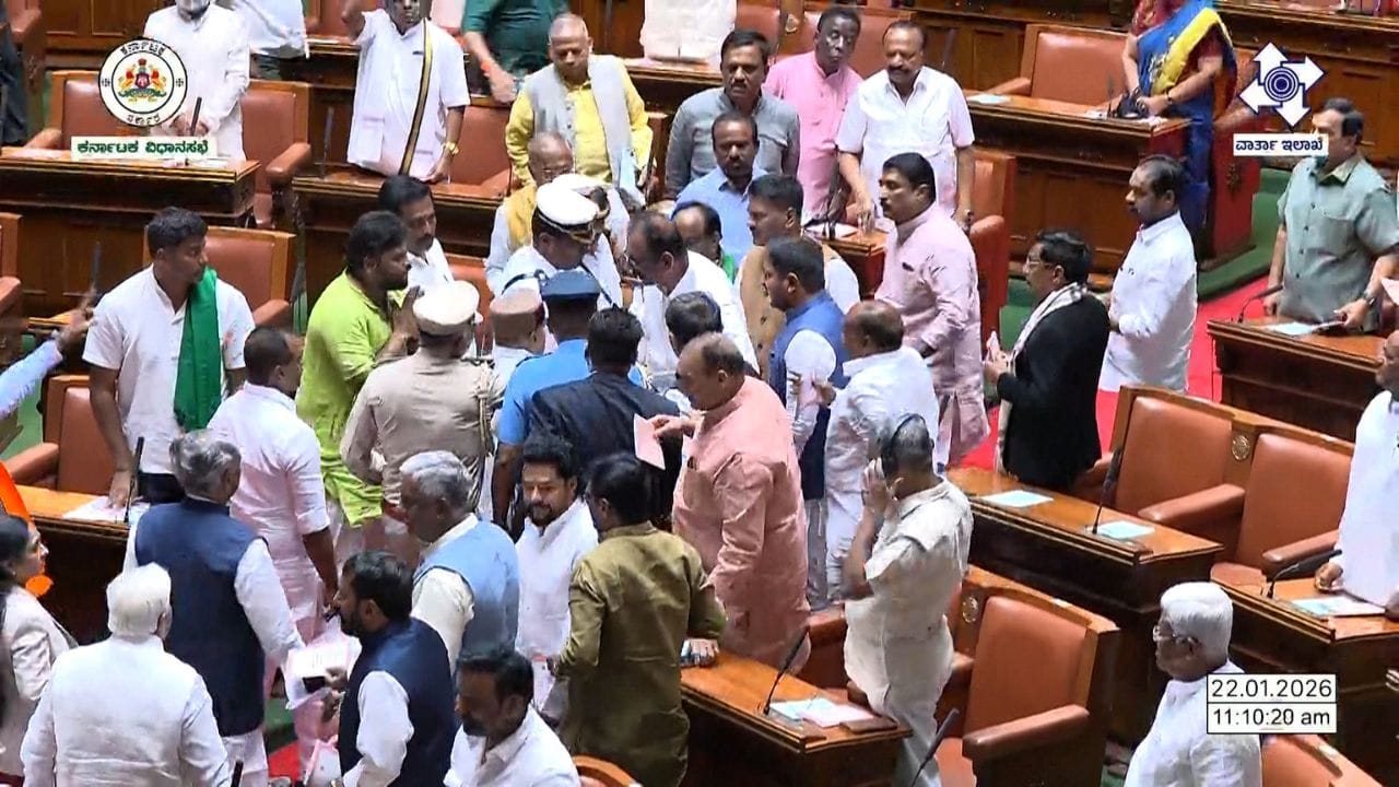 ಕರ್ನಾಟಕ ವಿಧಾನಮಂಡಲ ವಿಶೇಷ ಅಧಿವೇಶನವು ಜ.31ರವರೆಗೆ ನಡೆಯಲಿದ್ದು, ನರೇಗಾ ಹೆಸರು ಬದಲಾವಣೆಯ ಆಕ್ಷೇಪವೇ ಕೇಂದ್ರಬಿಂದು. ಆರಂಭದಲ್ಲಿ ರಾಜ್ಯಪಾಲರು ಬರಲು ನಿರಾಕರಿಸಿದರೂ, ಇದೀಗ ಸದನಕ್ಕೆ ಆಗಮಿಸಿ ಭಾಷಣ ಮಾಡಿದ್ದಾರೆ. ಸರ್ಕಾರದ