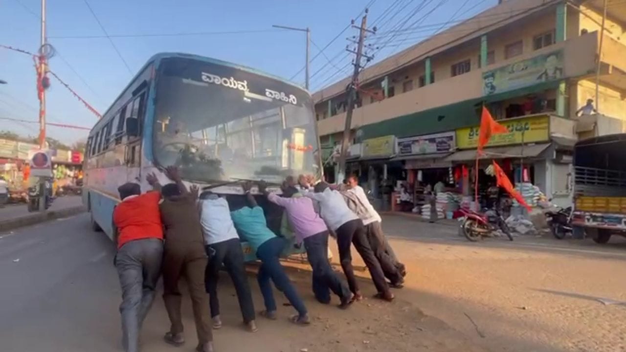 ಹಾವೇರಿ ಜಿಲ್ಲೆಯ ಶಿಗ್ಗಾಂವಿ ಪಟ್ಟಣದ ಸವಣೂರು ರಸ್ತೆಯಲ್ಲಿ ಕೆಎಸ್ಆರ್ಟಿಸಿ ಬಸ್ ಮಧ್ಯದಲ್ಲೇ ಕೆಟ್ಟು ನಿಂತಿದೆ. ಇಂಜಿನ್ ಸೀಜ್ ಆಗಿರುವುದರಿಂದ ಪ್ರಯಾಣಿಕರು ಪರದಾಡಬೇಕಾಯಿತು. ವಾಹನ ಸಂಚಾರಕ್ಕೆ ಅಡ್ಡಿಯಾಗಿದ್ದು, ಸಾರ್ವ